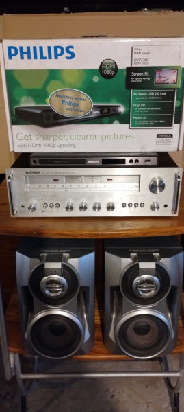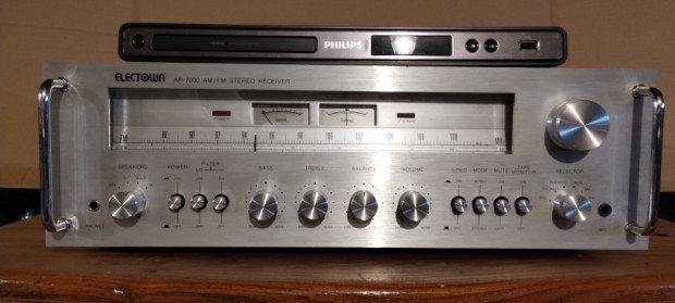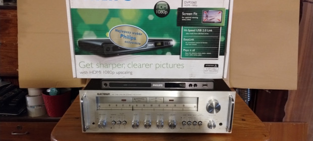 Sprzedam tanio piękny amplituner ELECTOWN AR-7000 z kolumnami SONY.Amplitunera w tak idealnym stanie i atrakcyjnej cenie brak w ogłoszeniach.Dla kolekcjonerów tego typu sprzęt to ;perełka".Sprzęt jak na zdjęciach,do tego gratis DVD PHILIPS stan nie znany.Dodatkowo można dokupić stolik z okresu PRL-u na którym stoi amplituner z kolumnami.Cena do negocjacji.
