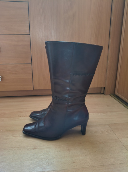 Sprzedam kozaczki skórzane damskie. Rozmiar 36 na szeroką łydkę. Kolor brązowy.
