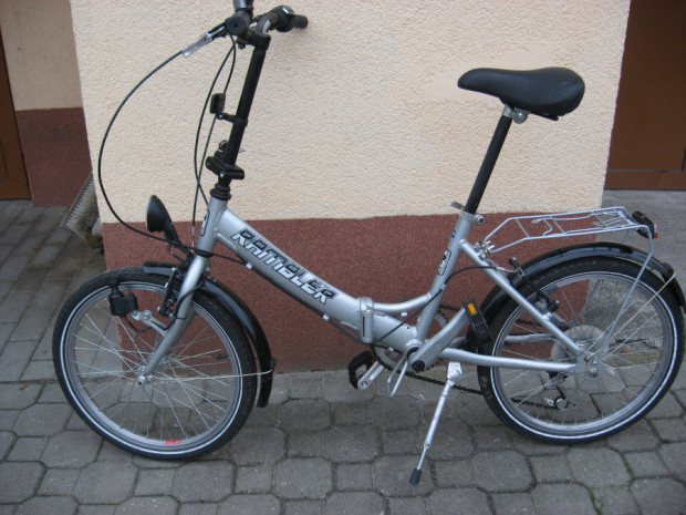 Sprzedam bardzo fajny aluminiowy składak na kołach 20", który można w kilkanaście sekund złożyć lub rozłożyć. Po złożeniu posiada małe rozmiary/ma nawet składane pedała/ co sprawia ,że jest wygodny do przewożenia w samochodzie. Jest 100% sprawny ,po przeglądzie, i regulacjach. Oświetlenie przednie na dynamo, tył na baterie. Ponadto 6 przełożeń w tylnym kole sterowane przerzutką zewnętrzną Shimano. Hamulce Klockowe v-break.Ogumienie w bardzo dobrym stanie. W razie pyta ń proszę dzwonić.NA SMS NIE ODPOWIADAM !!!