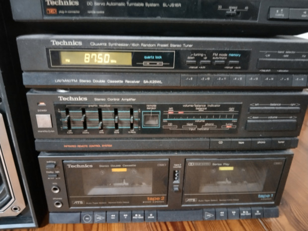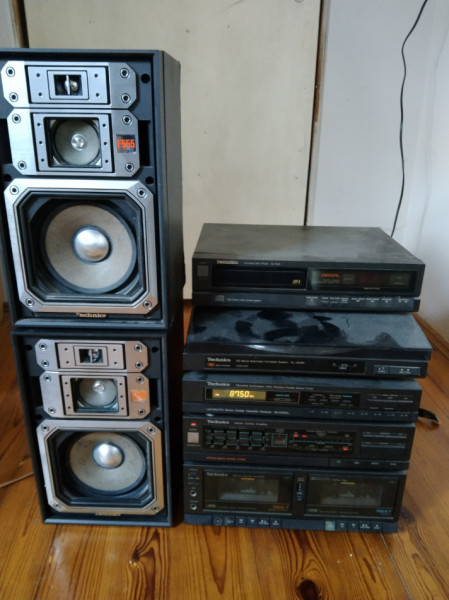 Używana wieża Technics. od lat u nas. 5lat temu jeszcze radia się używało. Co do CD to nie wiem bo brakuje kabli. A gramofon ma uszkodzona pokrywę i też nigdy nie słyszałem żeby był używany. Odnalazł się orginalny pilot