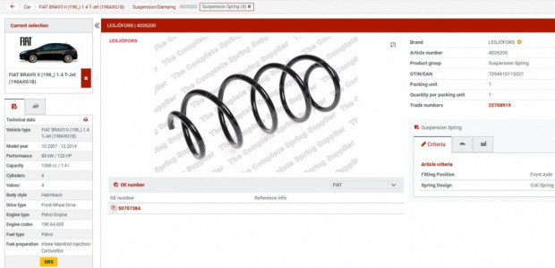 - niewiele używane przednie sprężyny marki Lesjofors 4026200 [OE Fiat 50707384].