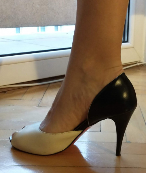 Kolory czarny i kremowy. Buty są prawie nowe. Stabilne i dobrze trzymają się na stopie. Numer 38. długość wkładki 24,5 cm. Wysokość obcasa 9 cm.