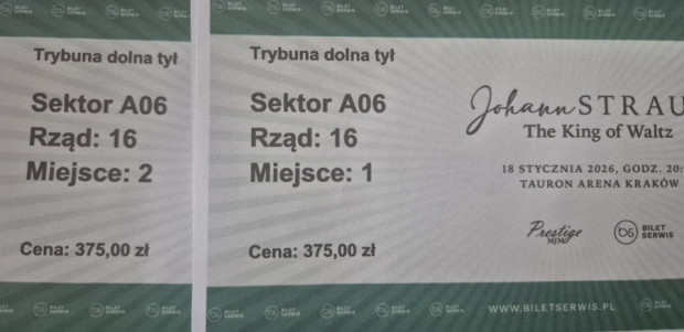 Dzień dobry, odsprzedam dwa bilety na koncert Filharmoników Wiedeńskich 18.01 Tauron Arena Kraków.