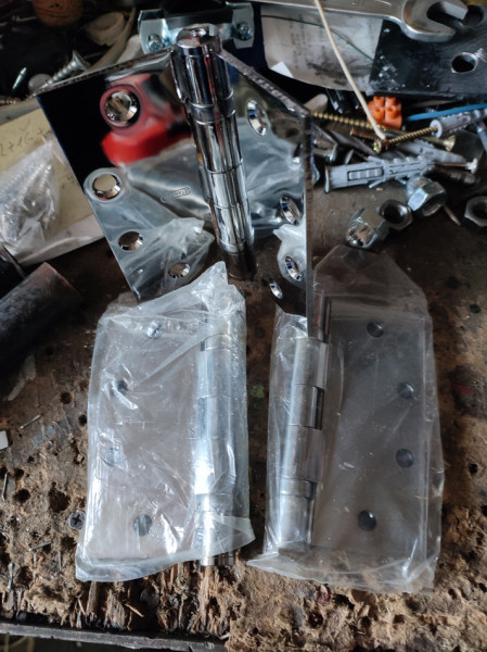Sprzedam trzy sztuki zawiasów do drzwi wahadłowych.