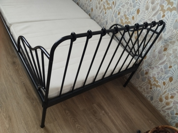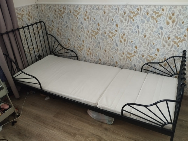 IKEA czarne łóżko rozsuwane 80x200 Minnen