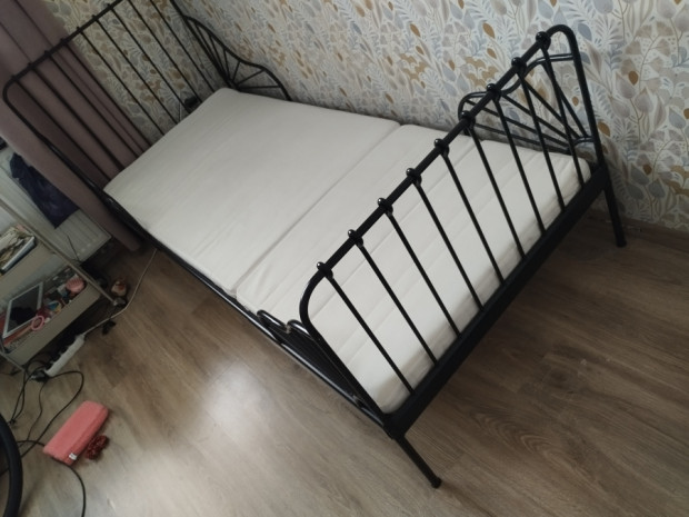 Solidne, czarne metalowe łóżko marki IKEA z kolekcji Minnen. Łóżko z funkcją regulacji długości. W zestawie ze stelażem i materacem.