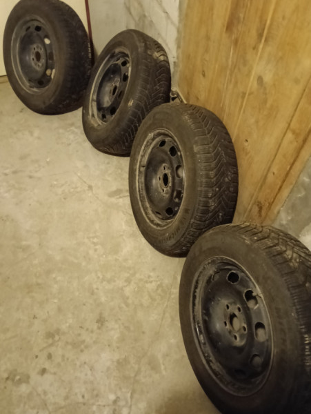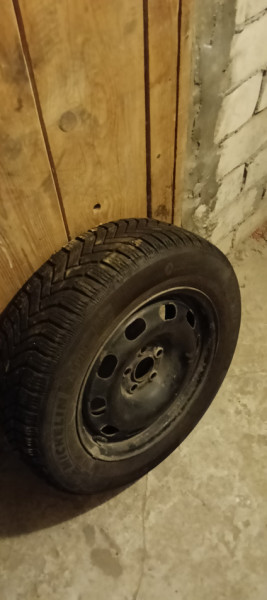 Sprzedam opony zimowe z felgami stalowymi 185/65/15 rozstaw śrub 5**100 Michelin Alpine z 2019 roku w dobrym stanie