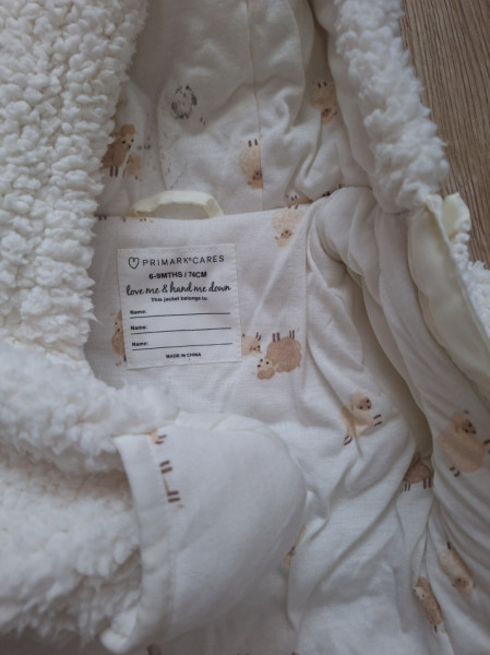 Kombinezon baranek, wyprałam go, ale nigdy nie był noszony (dlatego zaznaczylam stan nowy), córka dostała w prezencie, ale wyrosła zanim nałożyła. Z metki 6-9 miesięcy, ale dla wygody Waszej i bejkika polecam na r. 68.