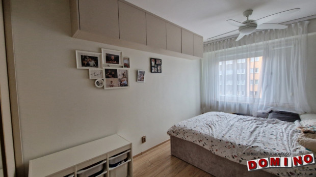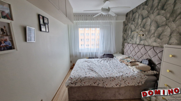 trzech samodzielnych pokoi: przestronnego, ustawnego salonu z wyjściem na duży balkon typu loggia, sypialni urządzonej w spokojnych, stonowanych barwach z łóżkiem małżeńskim i wygodną, zabudowaną szafą oraz trzeciego pokoju będącego obecnie garderobą w zabudowie stałej (możliwej do zdemontowania)