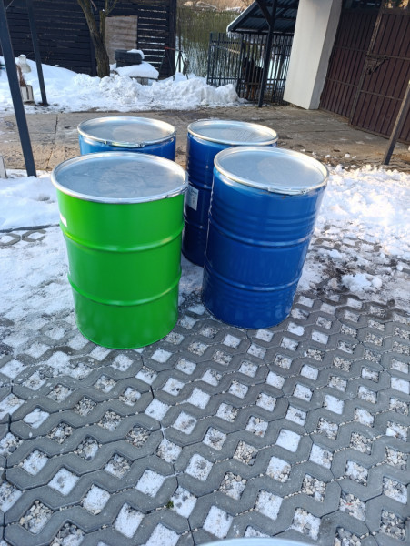 Sprzedam! 4 beczki metalowe na wodę 200 l czyste z otwieranym wiekiem na klamrę ,w cenie 60 zł/szt.