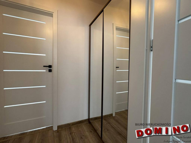 Mieszkanie o powierzchni 43 m2, składa się z 2 sypialni, salonu z aneksem kuchennym, łazienki i przedpokoju. W kuchni biała zabudowa ze sprzętem AGD. W łazience przestronna kabina prysznicowa oraz pralka. W sypialniach nie ma mebli, w przedpokoju duża szafa.