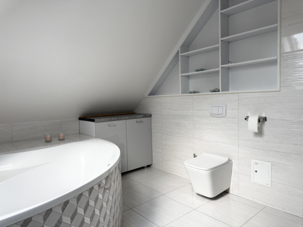 Dom jest gotowy do zamieszkania od zaraz. Posiada klimatyzację, ogrzewanie gazowe i kominek, co zapewnia komfort przez cały rok. Bezpieczeństwo zapewniają rolety, drzwi antywłamaniowe i monitoring. W całym domu ogrzewanie podłogowe. Brama na pilota, nawodnienie, internet światłowodowy, alarm. Panele fotowoltaiczne na starych zasadach!