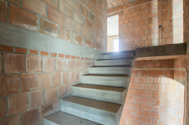 Budynek gospodarczy na etapie wylanych fundamentów, gdzie projekt obejmuje budynek parterowy niepodpiwniczony, z dachem wielospadowym, w którym zaprojektowane zostały trzy pomieszczenia gospodarcze i jedno pomieszczenie garażowe z miejscem na dwa samochody.
