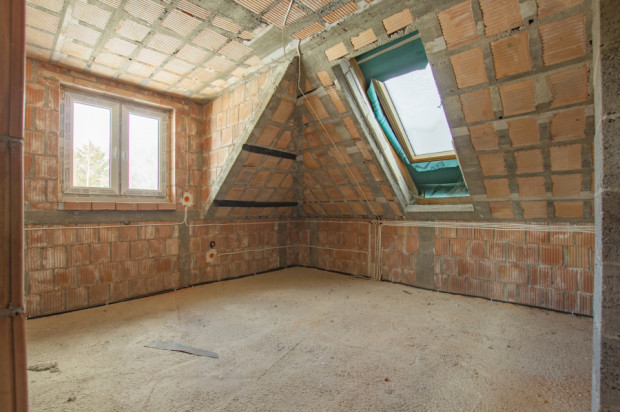 Pokrycie dachu: dachówka ceramiczna, zamontowane okna PVC w kolorze biały/orzech, profil Salamander. Zamontowane elektryczne rolety zewnętrzne, podtynkowe.