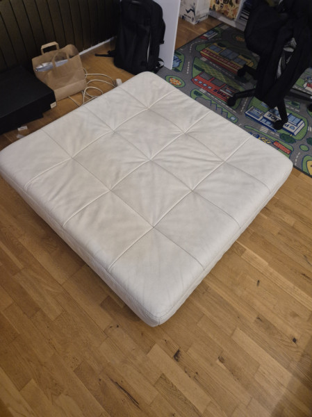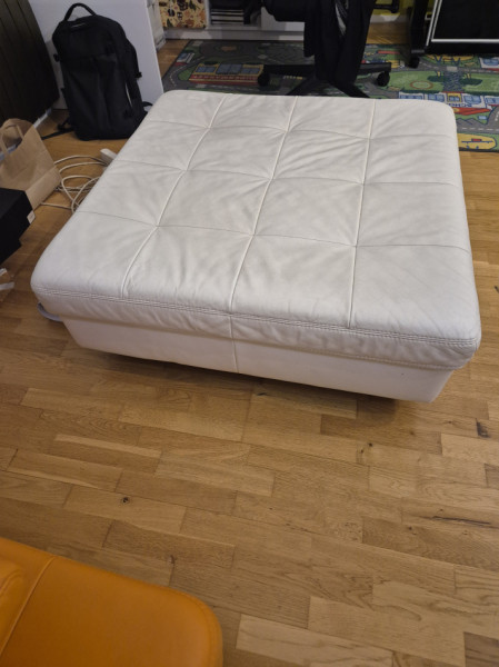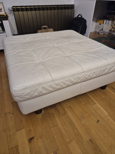 Do sprzedania duża pufa z białej skóry naturalnej bez zarysowań przetarć i pęknięć wymiary 1m x 1m. Stan bardzo dobry