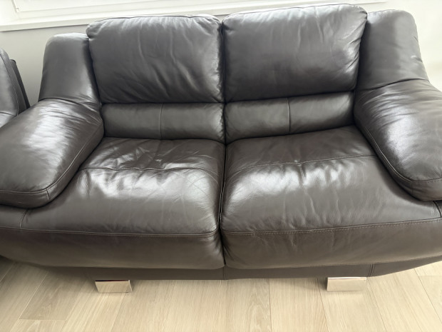 Sprzedam sofę dwuosobową i fotel obrotowy z naturalnej skóry kolor brązowy