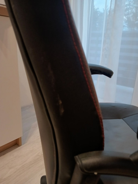 Stan określam na dobry, nie wielkie otwarcie na oparciu oraz łuszcząca się skóra na siedzisku, nie wpływa to na użytkowanie.