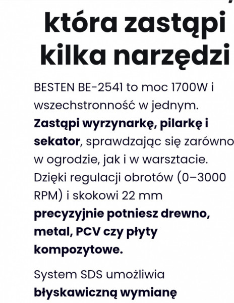 Witam mam do sprzedania piłę heblarkę konkretną BESTEN BE-2541 to moc 1700W i wszechstronność w jednym.