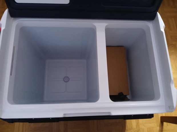 Lodówkę turystyczna dwie komory, 52 l temperatura chlodzenia -20stopni, możliwość regulacji temperatury dla każdej komory osobno zarówno recznie jaki i za pomocą aplikacji przez telefon. Lodówka była zakupiona z małym pęknięciem plastiku i została sklejona. Dodatkowym atutem lodówki sa kółka