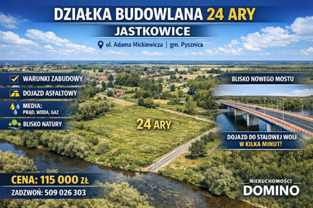 DZIAŁKA BUDOWLANA 24 ARY | JASTKOWICE, UL. ADAMA MICKIEWICZA | WARUNKI ZABUDOWY | MEDIA | BLISKO STALOWEJ WOLI