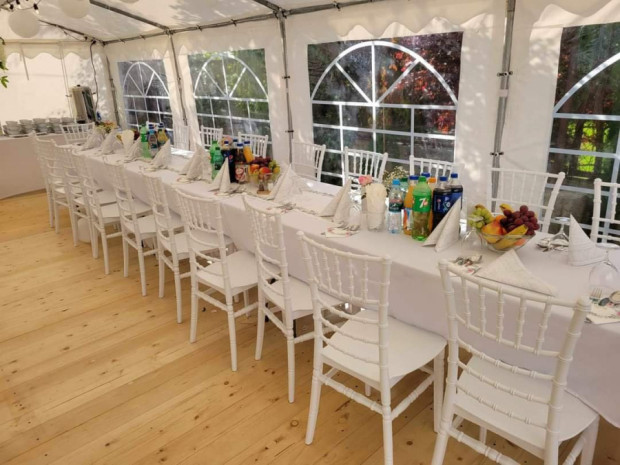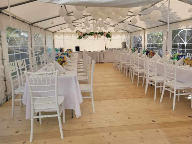 Wynajem namiotów idealnych na różnego rodzaju wydarzenia takie jak wesela, komunie, imprezy firmowe oraz inne uroczystości. Zapewniamy kompleksową obsługę, drewnianą podłogę, stoły, ławy, krzesła, zastawę, oświetlenie tworzące wyjątkową atmosferę. Możliwość wynajęcia samych stołów wraz z obrusami, ławek, wysokiej jakości krzeseł bankietowych, zastawy czy podłogi. Zapraszamy do kontaktu