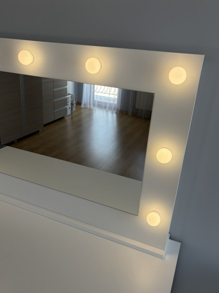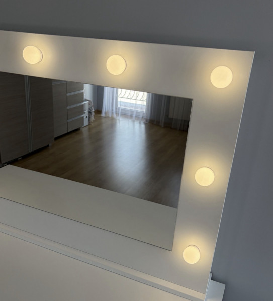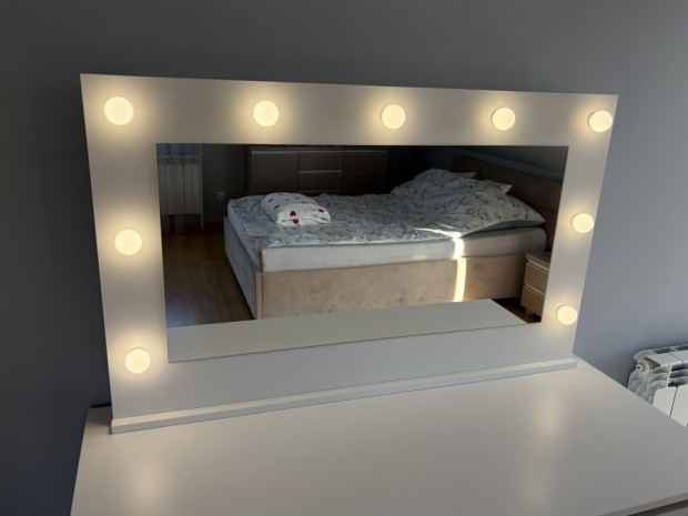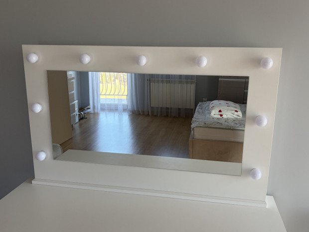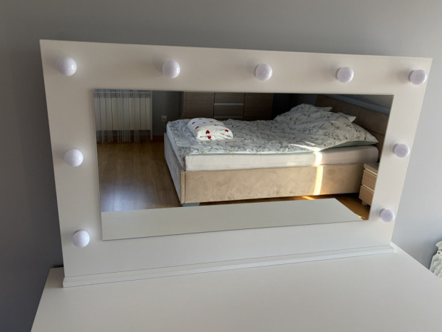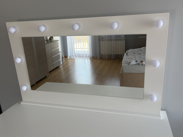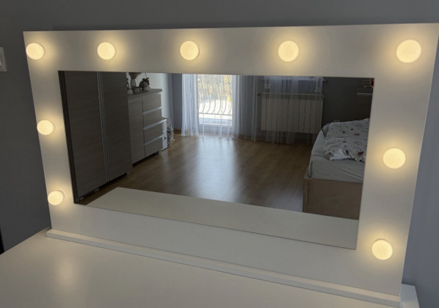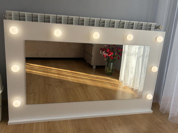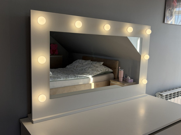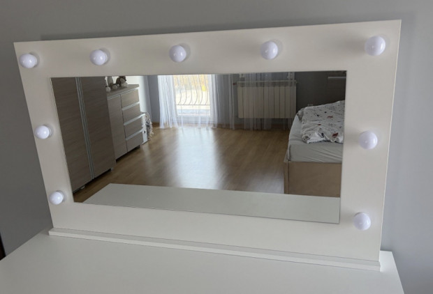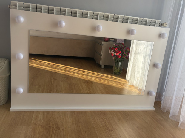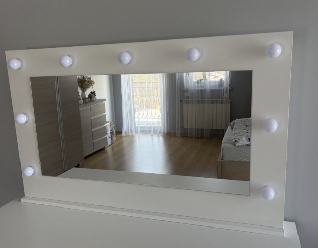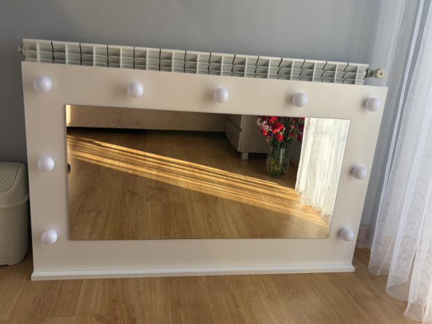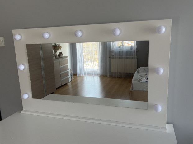 Lustro do toaletki z lampkami led. Wymiary: szerokość 110 cm, wysokość 67 cm. Stan bardzo dobry.
