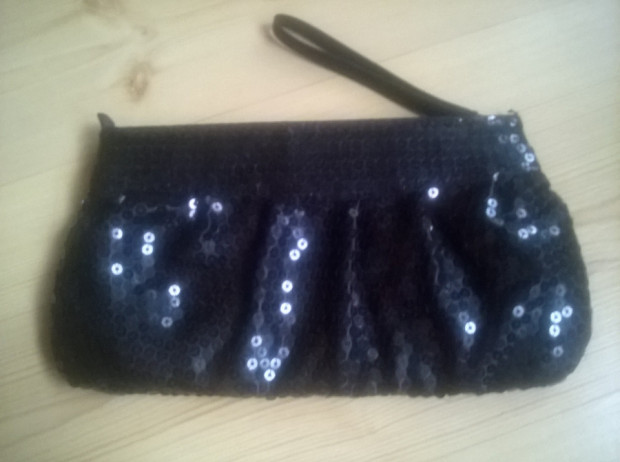 nowa czarna błyszcząca torebka-kopertówka, zapinana na zamek,