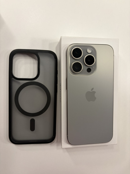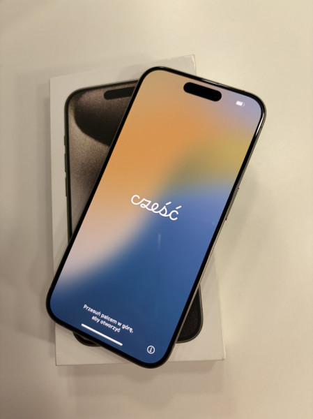 Używany telefon iPhone 15 Pro z wbudowaną pamięcią 512 GB. Stan bardzo dobry. Kupiony w Stanach Zjednoczonych. Kondycja baterii 88%. W zestawie kabel i etui magnetyczne Spaigen.
