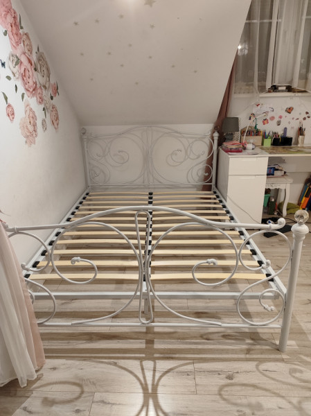 Solidna metalowa rama łóżka w stylu vintage. Posiada piękne, ażurowe zdobienia, które nadają jej eleganckiego charakteru. Rama jest w dobrym stanie, może posłużyć jeszcze wiele lat. Doskonała propozycja dla osób ceniących sobie unikatowe i stylowe meble do sypialni.