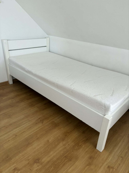 Łóżko w bardzo dobrym stanie. Wymiar 90x200. Materac bobelowy wzmacniany o wysokości 15 cm. Odbiór okolice Stalowej Woli.