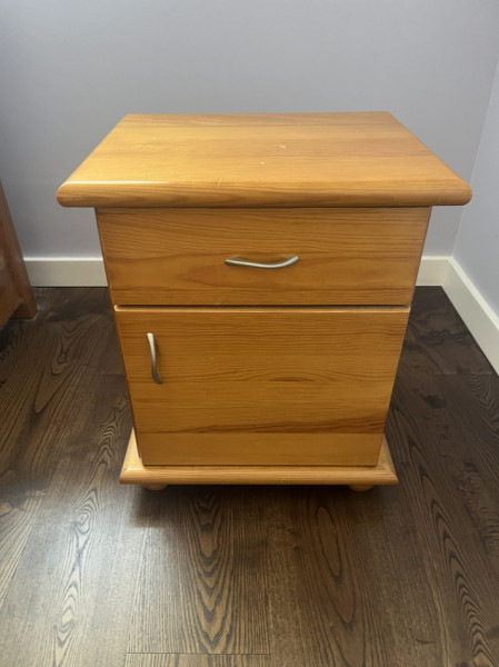Sprzedam łóżko drewniane 140X200 z dwiema szafkami oraz materacem. Łóżko posiada pojemnik na pościel.