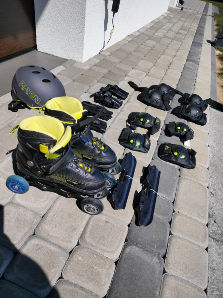 Łyżworolki niebieskie 200 zł stan idealny parę razy założone, zestaw zielony 250 również idealne, ochraniacze kask