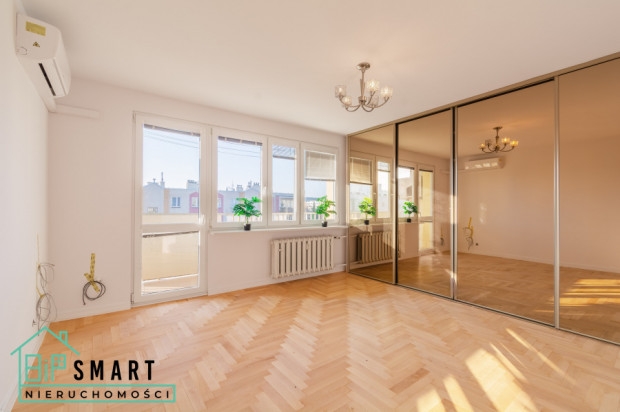 -przestronnego salonu z wyjściem na balkon typu loggia, idealnego na poranną kawę czy wieczorny relaks. W salonie znajduje się duża szafa w zabudowie oraz klimatyzacja, co gwarantuje wygodę przez cały rok,