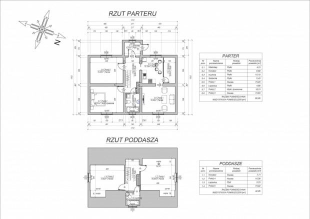- parterowy dom z poddaszem użytkowym o pow. użytkowej ok. 120m2;