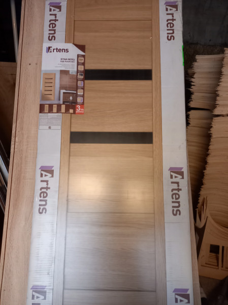 Drzwi łazienkowe nowe zafoliowane kolor dąb piaskowy widoczny na zdjęciu