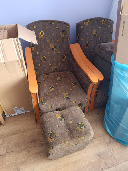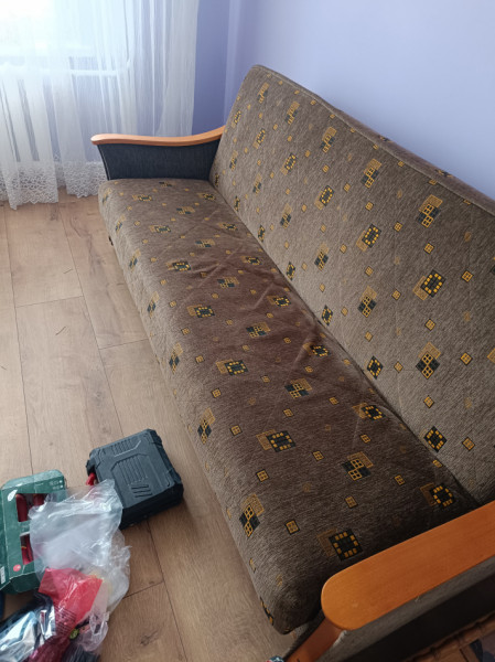 Oddam komplet mebli: sofa, dwa fotele i dwie pufy. Wszytko wyprane odkurzaczem piorącym.