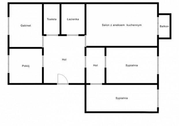 • salon z aneksem i wyjściem na balkon