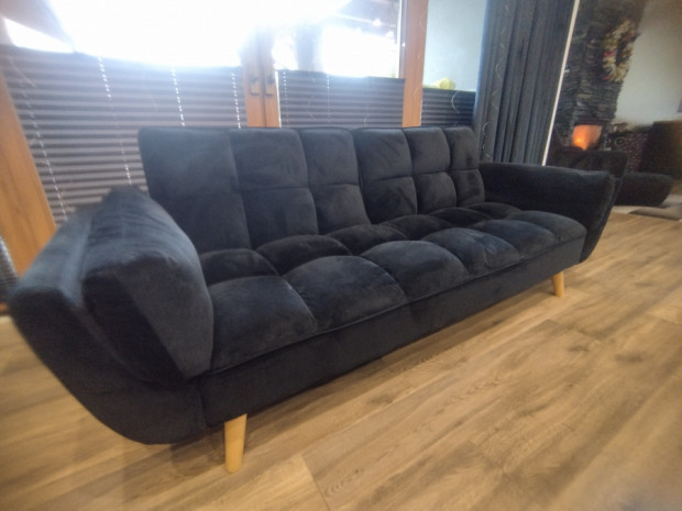 Czarna welurowa sofa - rozkładana