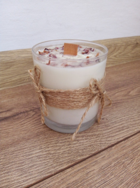 Świeczka zapachowa z płatkami róż, ręcznie robiona -12zl,