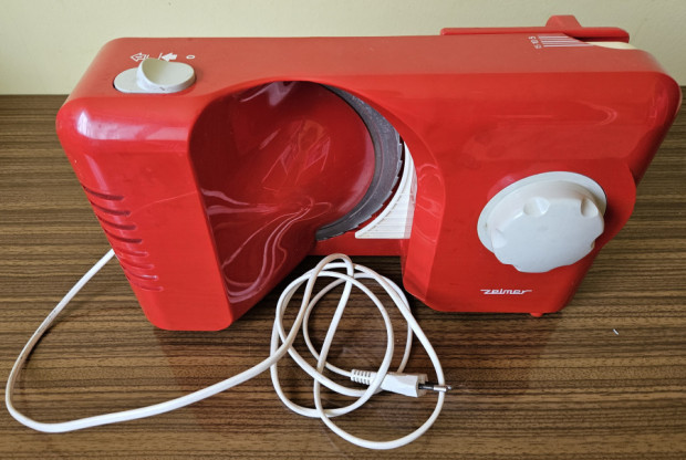 Krajalnica w pełni sprawna, używana z delikatnymi (ale widocznymi) śladami użytkowania oraz kompletna. Inne cechy to: regulacja grubości cięcia, składany stolik ułatwiający przechowywanie w małej kuchni i zabezpieczenie przed włączeniem bez stolika, stała dostępność części zamiennych np. noża (i to pomimo odległej daty produkcji).